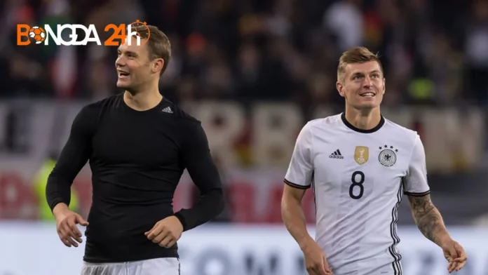 HomeTIN TỨCLộ diện nhóm lãnh đạo của ĐT Đức tại EURO 2024 TIN TỨCTHỂ THAOBóng đá Lộ diện nhóm lãnh đạo của ĐT Đức tại EURO 2024 0 136 By Carlo Biado Tháng 3 1, 2024 Manuel Neuer, Antonio Rudiger, Toni Kroos và Ilkay Gundogan sẽ là 4 cầu thủ lãnh đạo phòng thay đồ ĐT Đức tại VCK EURO 2024 sắp tới. Mới đây, BILD SPORT tiết lộ HLV Julian Nagelsmann đã chọn được nhóm 4 cầu thủ lãnh đạo của ĐT Đức ở VCK EURO 2024 sắp tới trên sân nhà. 4 cầu thủ này gồm Manuel Neuer, Antonio Rudiger, Toni Kroos và Ilkay Gundogan. Neuer chưa chơi trận nào cho ĐT Đức từ sau tai nạn hồi cuối năm 2022. Sau khi trở lại, thủ môn 37 tuổi không được Julian Nagelsmann triệu tập ở đợt tập trung hồi tháng 11 năm ngoái. Tuy nhiên, HLV 36 tuổi đã hứa sẽ gọi và để Neuer bắt chính ở 2 trận giao hữu với Pháp và Hà Lan vào tháng tới. Nagelsmann cũng hoàn toàn ủng hộ thủ môn này bất chấp những tin đồn cả 2 từng mâu thuẫn với nhau tại Bayern Munich. Với Rudiger, Nagelsmann coi trung vệ của Real Madrid là trụ cột hàng thủ. Rudiger từng gặp khó khăn khi hòa nhập với môi trường trên tuyển, nhưng Toni Kroos hứa hẹn sẽ giúp đỡ trung vệ 30 tuổi khi cả 2 là đồng đội ở Los Blancos. Ở chiều ngược lại, Rudiger cũng góp công lớn trong việc thuyết phục Kroos trở lại với ĐT Đức. Trong khi đó, BILD nói rõ HLV Julian Nagelsmann rất tin tưởng vào khả năng chuyền bóng và giữ bình tĩnh của Kroos nên sẽ đảm bảo suất đá chính cho tiền vệ của Real. Để phát huy điểm mạnh của ngôi sao 34 tuổi, Nagelsmann sẽ để anh đá cặp cùng 1 tiền vệ phòng ngự (có thể là Robert Andrich hoặc Pascal Gross). Điều này càng củng cố khả năng Leon Goretzka phải ngồi dự bị còn Joshua Kimmich trở lại vị trí hậu vệ phải. Cuối cùng, Julian Nagelsmann vẫn để Gundogan giữ băng thủ quân dù Manuel Neuer đã trở lại. Điều này là hợp lí bởi tiền vệ 33 tuổi là đội trưởng dẫn dắt Man City giành cú ăn 3 ở mùa giải trước, anh cũng đang là thủ lĩnh hàng tiền vệ Barca ở mùa này. Hơn nữa, Gundogan đã giữ băng thủ quân của ĐT Đức cả 4 trận dưới thời Nagelsmann. LEAVE A REPLY Cancel reply Comment: Please enter your comment! Name:* Please enter your name here Email:* You have entered an incorrect email address! Please enter your email address here Website: Save my name, email, and website in this browser for the next time I comment. Previous articleArteta hết lời khen ngôi sao bị lãng quênNext articleDấu hiệu đáng lo ngại về Jude Bellingham Carlo Biado Có liên quan TIN TỨC Suarez gia hạn thêm 1 năm với Inter Miami Tháng 12 13, 2025 TIN TỨC Cựu tiền vệ Chelsea phải giải nghệ sớm vì bệnh tim Tháng 12 13, 2025 TIN TỨC Thắng thuyết phục U22 Malaysia, U22 Việt Nam vào bán kết Tháng 12 11, 2025 Tin mới nhất Suarez gia hạn thêm 1 năm với Inter Miami Tháng 12 13, 2025 Cựu tiền vệ Chelsea phải giải nghệ sớm vì bệnh tim Tháng 12 13, 2025 Thắng thuyết phục U22 Malaysia, U22 Việt Nam vào bán kết Tháng 12 11, 2025 World cup 2026 có quy định mới bắt buộc Tháng 12 9, 2025 Hạ U22 Indonesia 1-0, U22 Philippines trở thành đội đầu tiên vào bán kết SEA Games 33 Tháng 12 8, 2025 Load more
