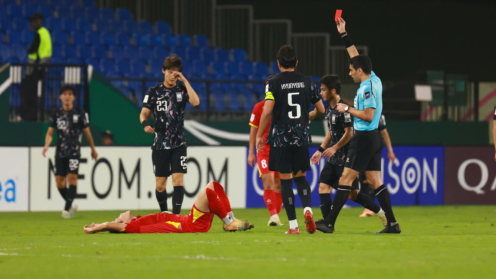 Về phía cá nhân, Đình Bắc bị xác định có hành vi phạm lỗi nghiêm trọng dẫn đến thẻ đỏ trực tiếp trong trận tranh hạng Ba VCK U23 châu Á 2026 giữa Việt Nam và Hàn Quốc ngày 23/1/2026.